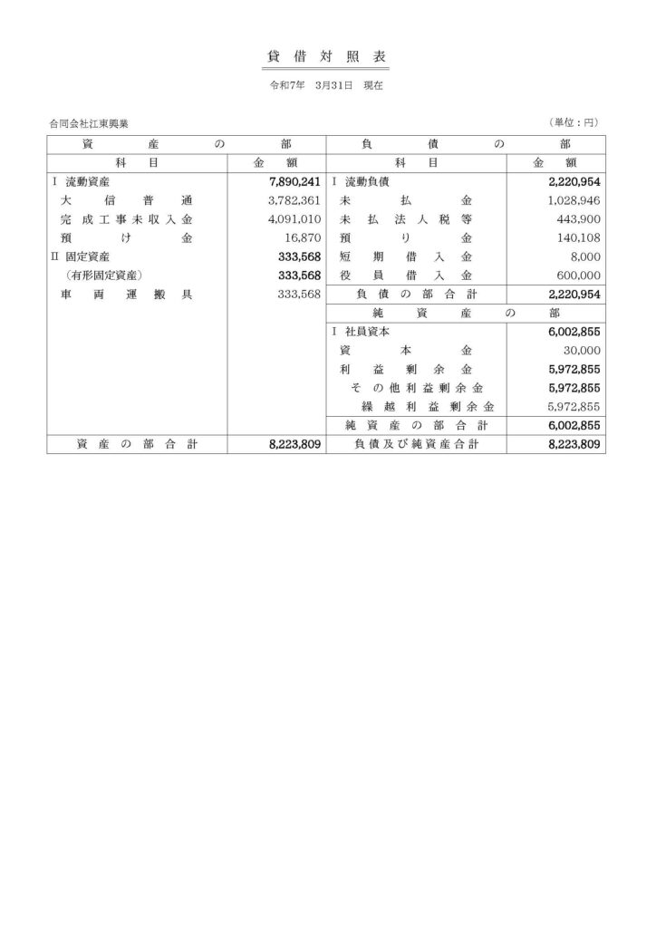 最新の決算(令和6年4月1日~令和7年3月31日)